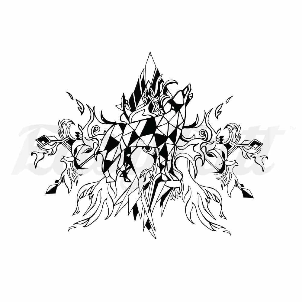 Geometric Dog and Flames Temporary Tattoo